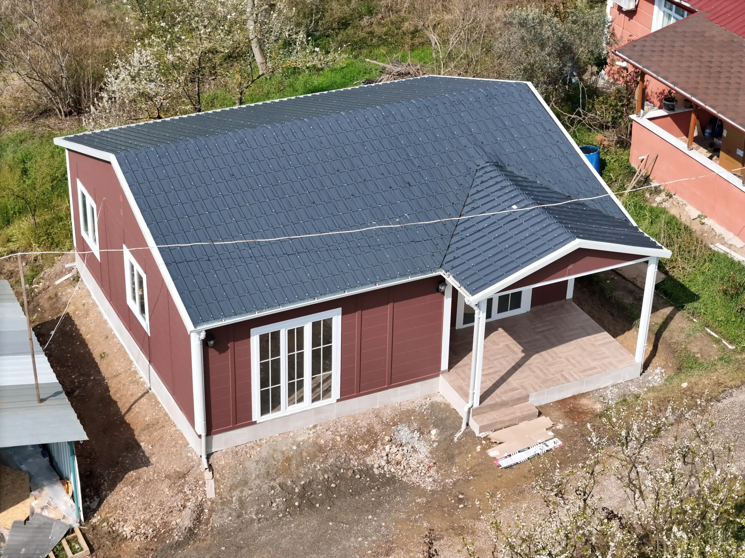 Taşınabilirlik ve Sürdürülebilirlik: Prefabrik evler demonte edilip farklı bir yere yeniden kurulabilir. Ayrıca çelik korozyona dayanıklı, çevreci bir yapı sistemine sahiptir